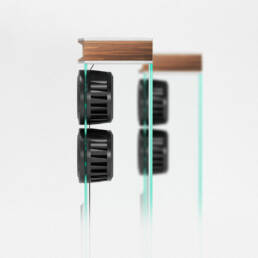 La philosophie Waterfall est ici poussée à l’extrême jusqu’au moindre cm². Aluminium massif, pièces techniques garnies en cuir Nappa surpiqué comme sur les tableaux de bords des plus belles automobiles, borniers surdimensionnés, chaque détail présente un caractère exceptionnel. Le même sentiment de noblesse se dégagera quel que soit l’endroit où vous poserez le regard.