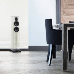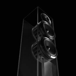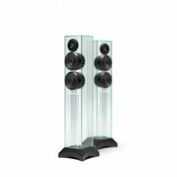 La densité du verre, alliée aux multiples technologies innovantes développées dans nos enceintes, révolutionne un univers figé. Le verre, l’aluminium, denses et inertes, deviennent une évidence dès les premières secondes d’écoute
