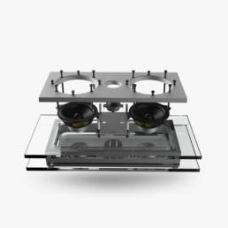 Summum de notre collection murale cette enceinte utilise l’aluminium massif et des verres de forte épaisseur. Ces matériaux sont découpés, usinés, façonnés selon des processus industriels d’une extrême rigueur pour atteindre un niveau de finition exceptionnel, inconnu sur ce segment de marché.