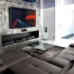 La version « Center » présentée ici est horizontale, c’est la partenaire idéale de nos configurations Home Cinema. (Socle aluminium et grille HP en option).
