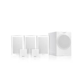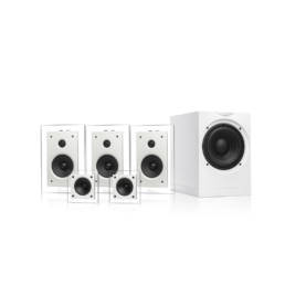 Configuration minimale requise pour une écoute multicanale, ajout d’enceintes surround complémentaires possible. Attaches murales fournies.