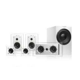 Configuration minimale requise pour une écoute multicanale, ajout d’enceintes surround complémentaires possible. Attaches murales fournies.
